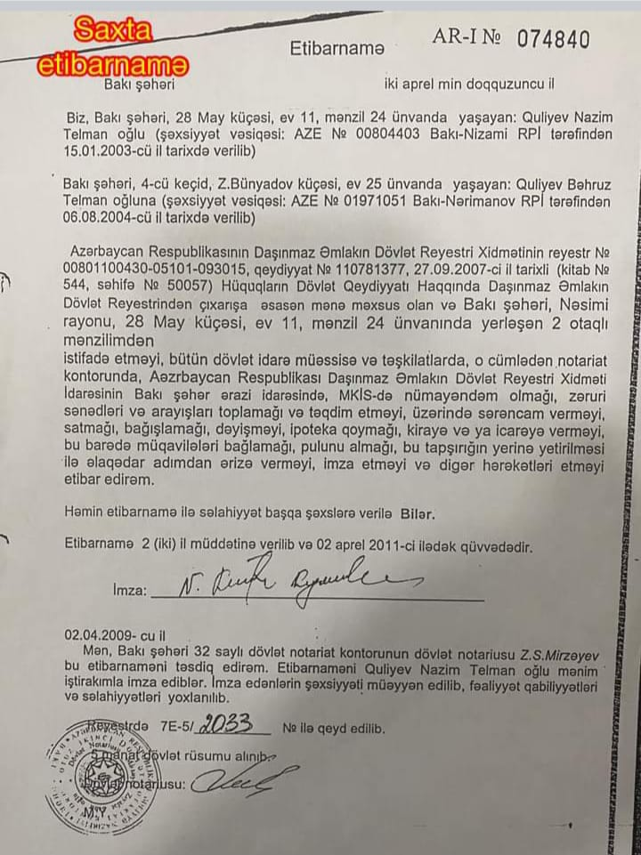 Azərbaycan Ədliyyəsi "ölü dirildən", saxta etibarnamələr yazan mürdəşirlərin nəzir qutusuna çevrilmişdir.