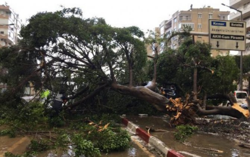 Şiddətli yağışla müşayiət olunan tufan Adrasan şəhərindən yan ötməyib.