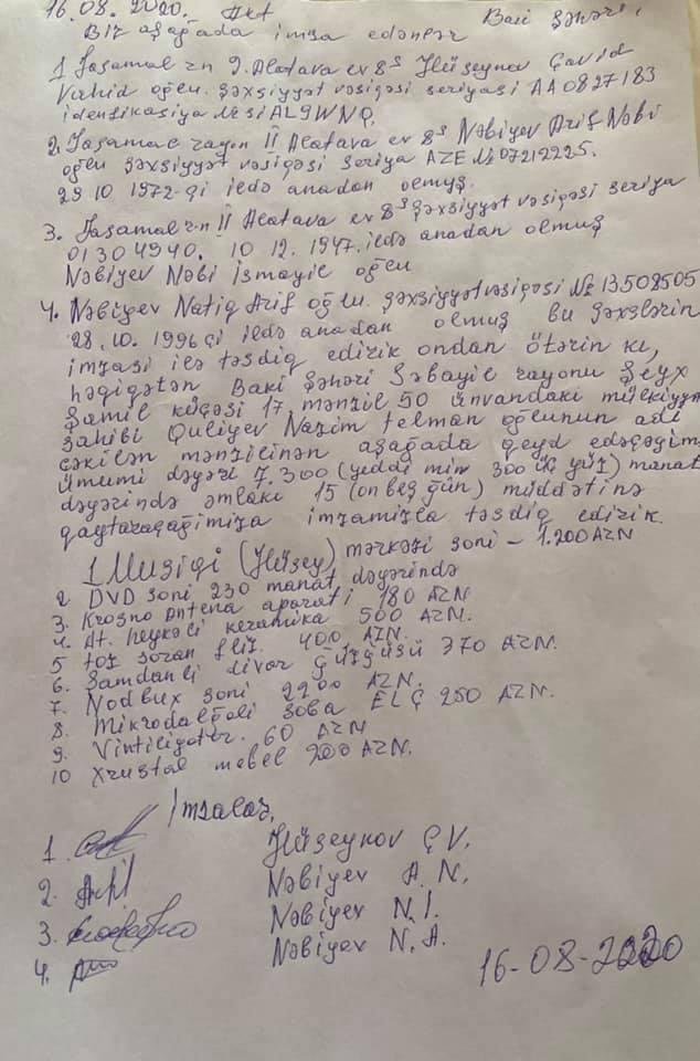 8 nəfərin şəcərəsi oğurluq faktını mənə etiraf etdi və oğurladıqları əşyaların bir hissəsinin evdə olduğu və gətirəcəklərini aktla and-aman etdilər...